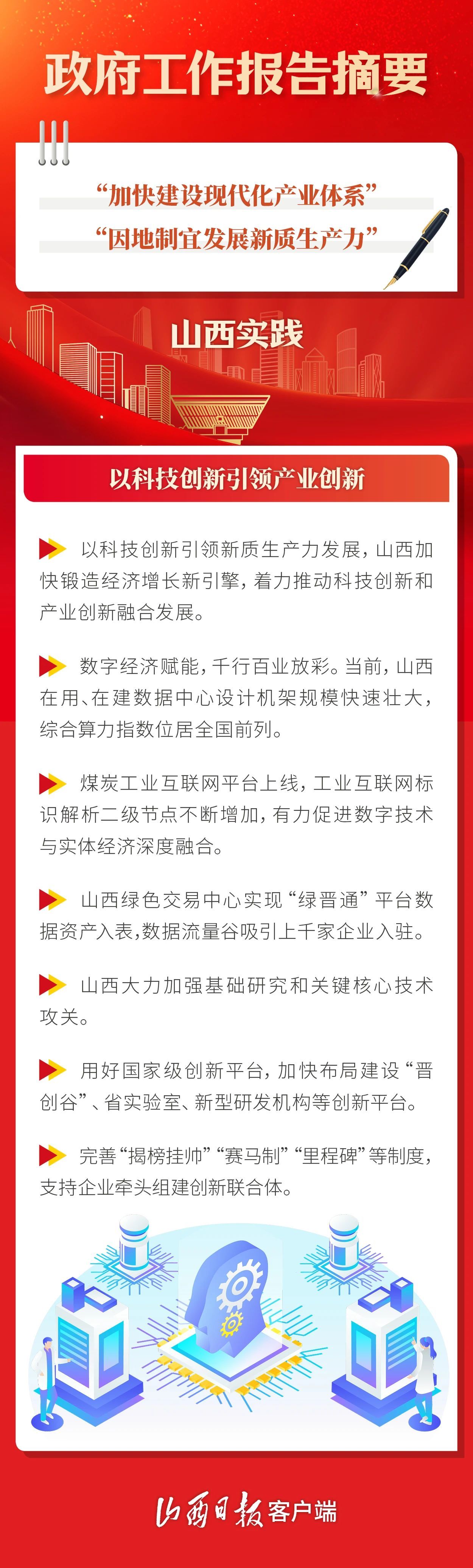 今年的政府工作报告中,“加快建设现代化产业体系”备受关注。对于书写“在转型发展上率先蹚出一条新路”时代华章的山西而言,更具针对性和指导性。