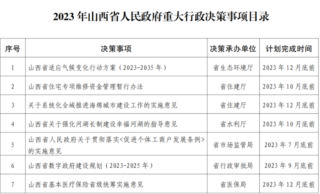 山西省人民政府办公厅关于印发2023年山西省人民政府重大行政决策事项目录的通知.pdf