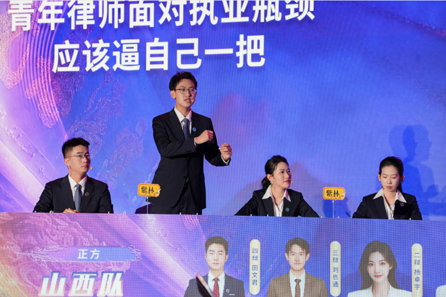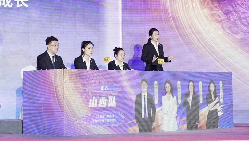 决赛中,山西代表队与上海代表队围绕“青年律师的成长,更应该坚守法律理想的‘月亮’还是更应该适应行业现实的‘六便士’”展开巅峰对决。山西代表队在立论、质询、自由辩论和总结陈词各环节均表现出色,最终凭借优异表现夺得冠军,展现出青年律师的专业素养与辩论风采。