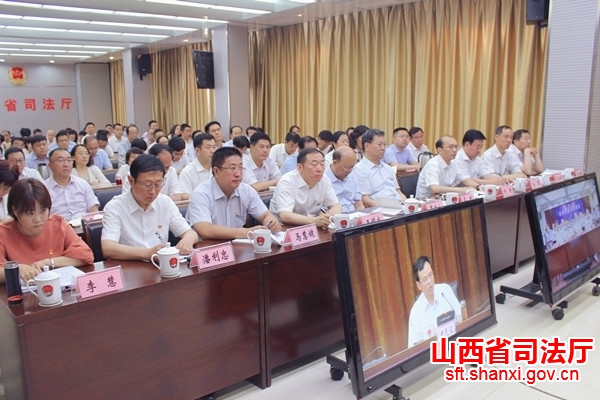 会议以电视电话会议形式召开。在司法厅主会场参加会议的有:厅领导,省委依法治省办秘书处、厅机关及驻厅单位副处级以上党员干部,省政法干院、司法学校班子成员,厅党委办(机关党委)、办公室、政治部全体党员干部。驻厅纪检监察组副处级以上党员干部应邀参会。在分会场参加会议的有:省监狱局、戒毒局,省直各戒毒单位班子成员以及中层以上党员干部。